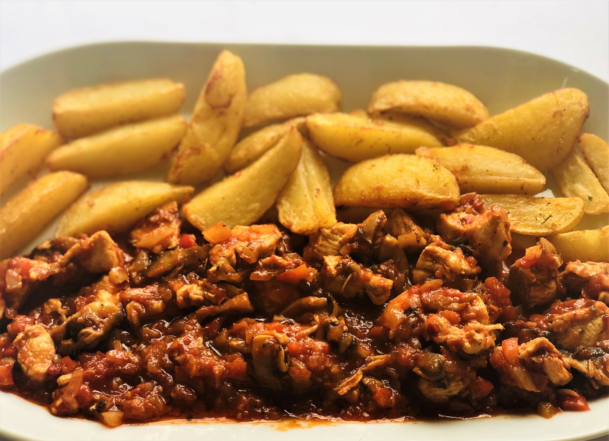 sos pizza, mozzarella, piept de pui, ciuperci, ardei -