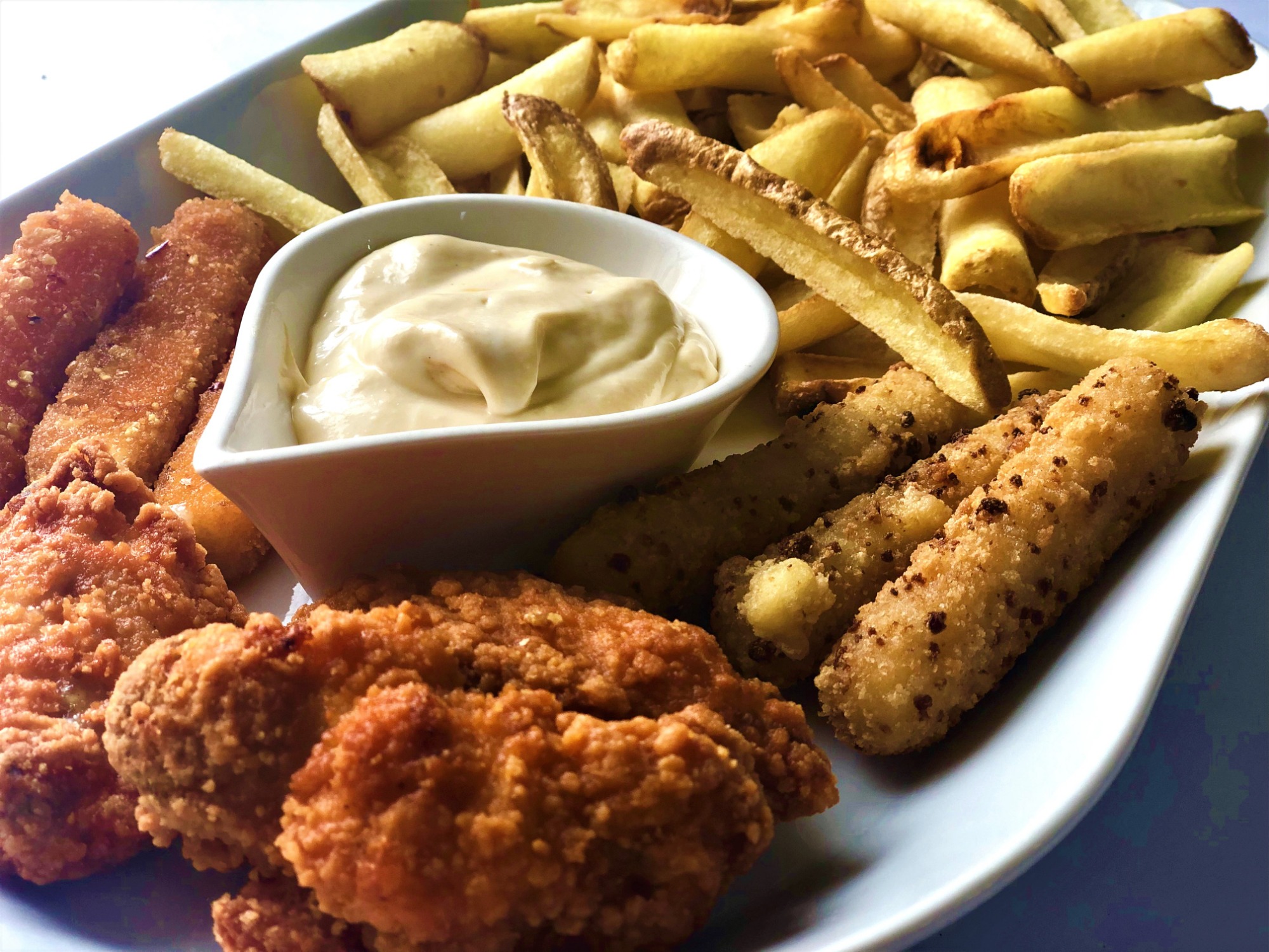 600g - Gujoane de pui, light strips, nuggets, bucatele de pui, maioneza, sos piri -